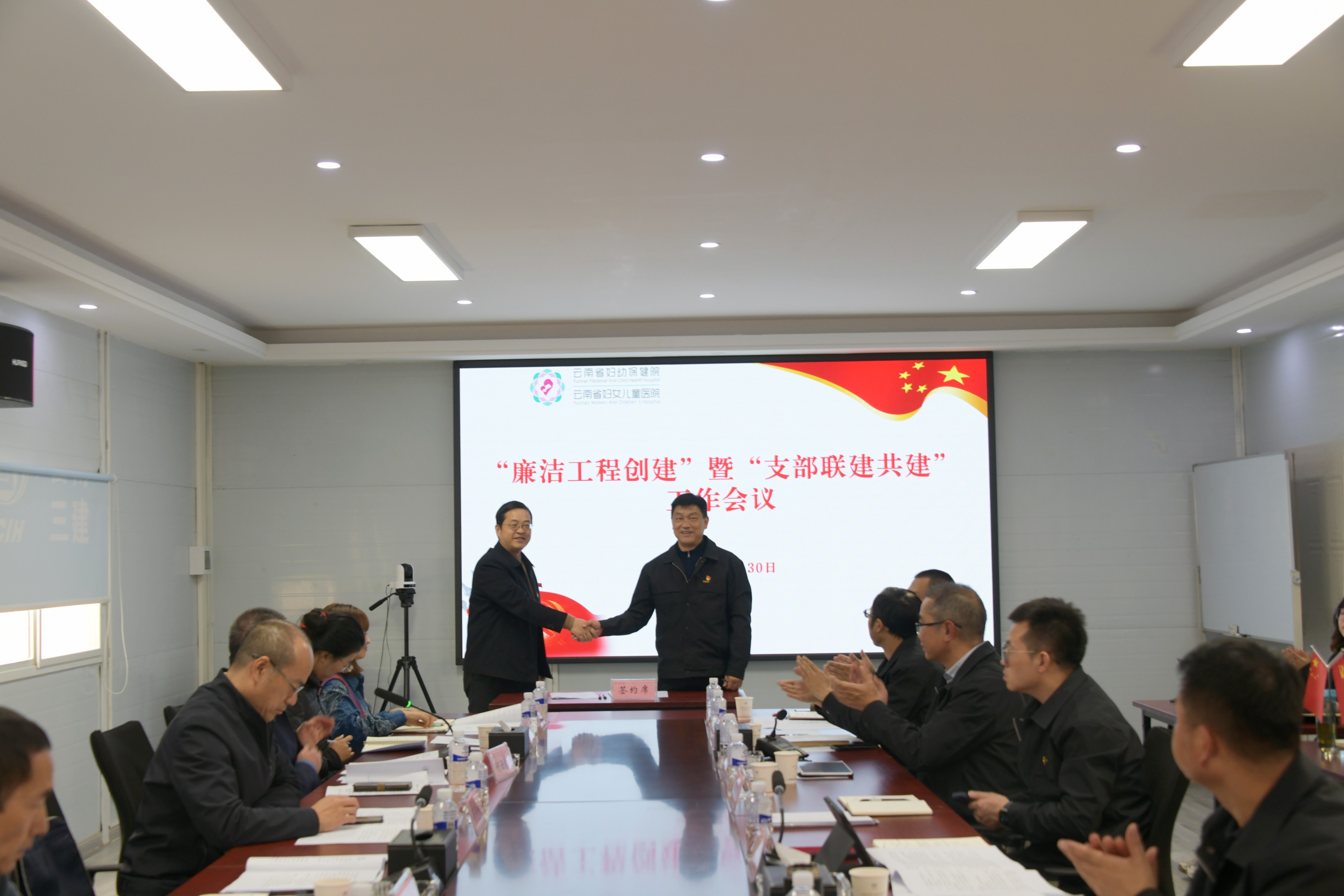 為持續(xù)深化黨風(fēng)廉政建設(shè)和支部聯(lián)建共建深度融合、優(yōu)勢(shì)互補(bǔ),11月30日下午,公司與云南省婦幼保健院在云南省婦幼保健院(云南省婦女兒童醫(yī)院)新院建設(shè)項(xiàng)目舉行了廉潔工程創(chuàng)建暨支部聯(lián)建共建協(xié)議簽訂會(huì)。云南省婦幼保健院黨委書記潘旭陽(yáng)、院長(zhǎng)車學(xué)繼,公司黨委書記、董事長(zhǎng)彭云,黨委副書記、紀(jì)委書記李慶光及相關(guān)職能部門、基層單位人員參加會(huì)議。