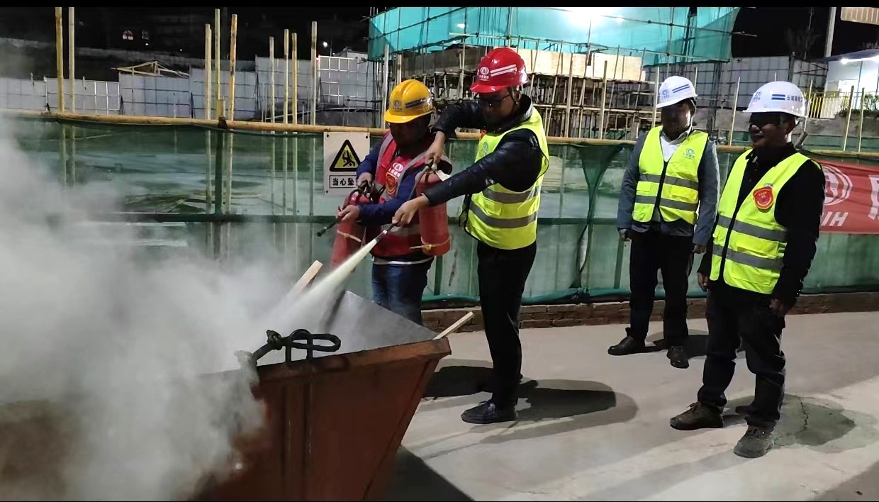 此外,安全保衛(wèi)部相關(guān)人員還在項目現(xiàn)場對干粉滅火器進(jìn)行現(xiàn)場教學(xué)。