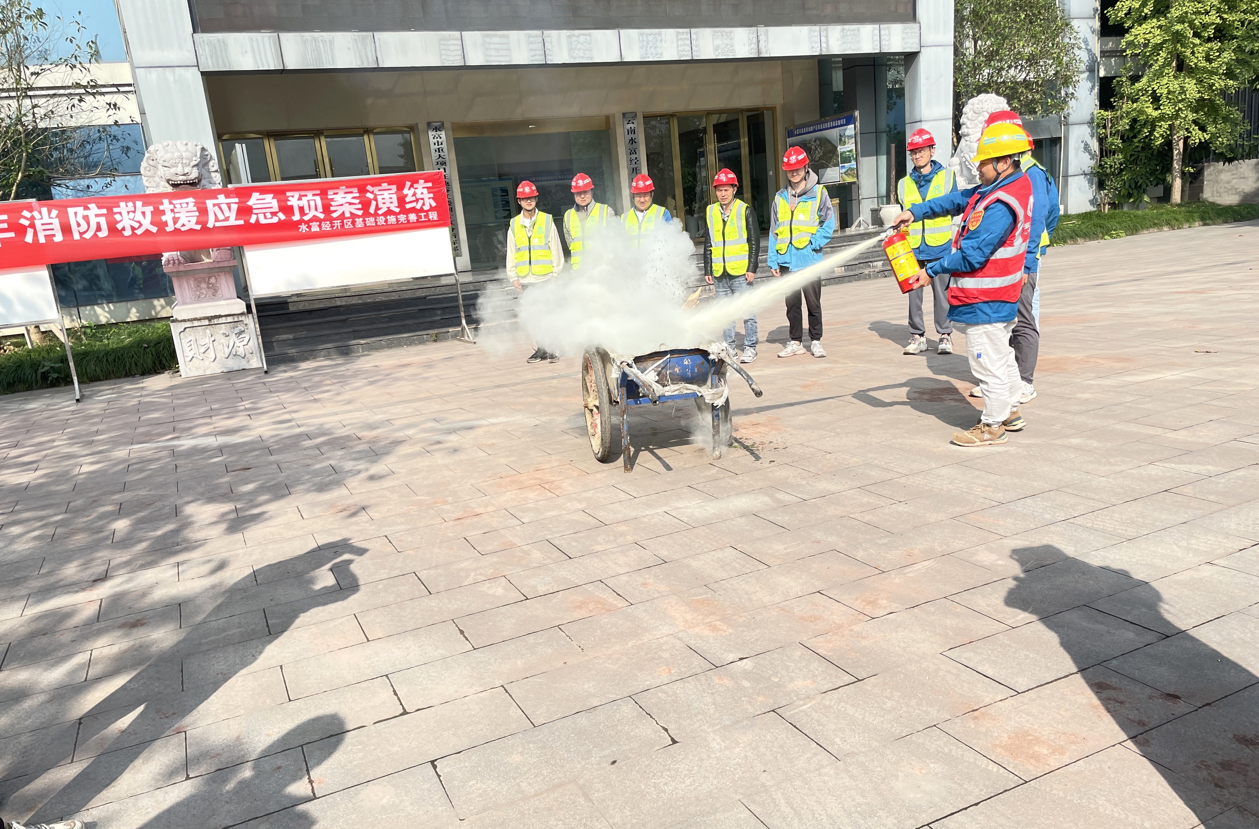 11月22日,由公司第十一直管項目部承建的水富經(jīng)開區(qū)基礎(chǔ)設(shè)施項目部聯(lián)合十公司項目部、現(xiàn)場監(jiān)理開展消防應(yīng)急演練滅火實(shí)戰(zhàn)演練,現(xiàn)場管理人員、監(jiān)理人員共計10余人參加。