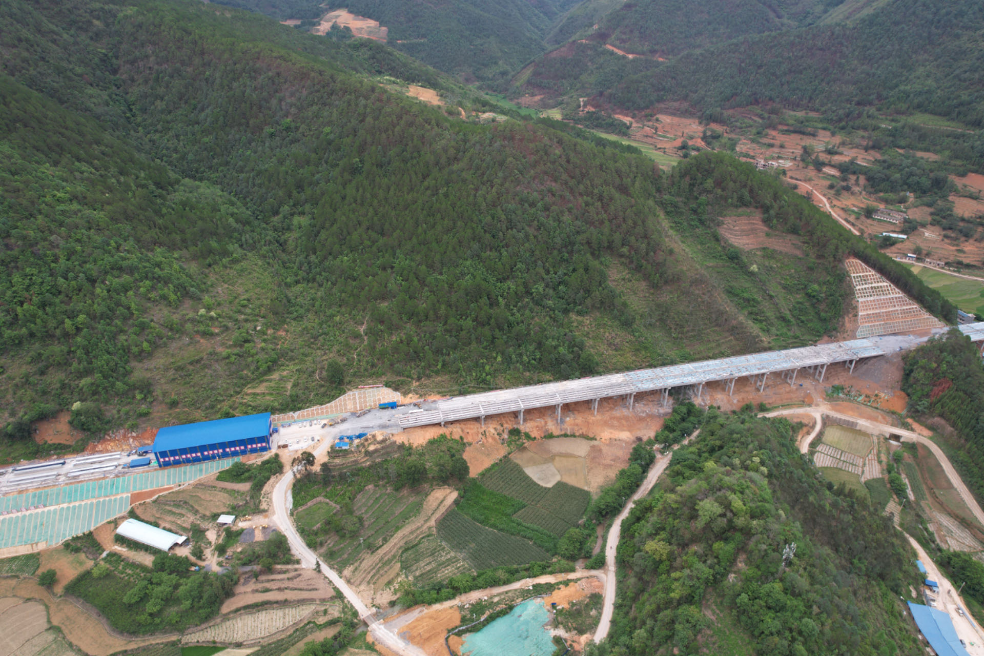 古寧高速土建四分部施工段位于云南省麗江市古城區(qū)南側(cè),路線起點(diǎn)順接鶴關(guān)高速關(guān)坡樞紐互通,途經(jīng)壽南村、三元村、貴峰村、大獵村、美自村、啟可村、達(dá)瓦村、止于上啟良村東南側(cè),主線長(zhǎng)8.3km、路線全長(zhǎng)10.49 km,橋梁9座/4761m、隧道1座/1665m、互通1座。