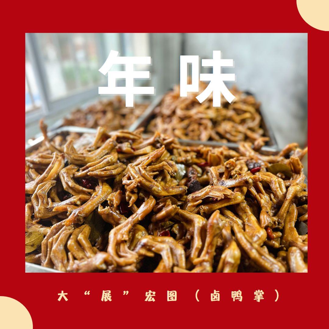 據(jù)主廚介紹,燜肉帽子采用豬后腿肉,配上醬料慢火炒制而成,油色通紅,肉質(zhì)香辣可口,讓人垂涎欲滴。千張肉則采用上好的五花肉,用冬菜、紅糖、醬油、太和豆豉、蜂蜜等調(diào)料腌制、蒸熟后密封包裝。鹵鴨腳用食堂的秘制鹵水慢火煨制而成,出鍋冷卻控油后真空裝袋,保證每一口都充滿著韌性嚼勁。