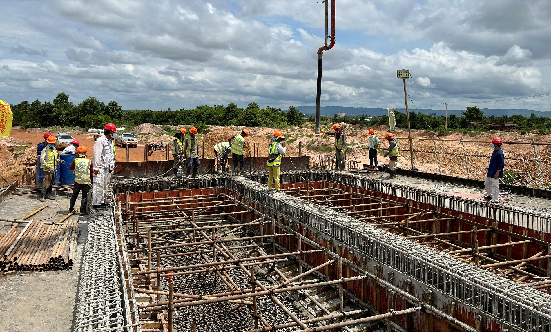 7月15日下午,伴隨著最后一方混凝土入模,路橋市政直管一部承建的柬埔寨暹粒吳哥國(guó)際機(jī)場(chǎng)建設(shè)項(xiàng)目樓前高架橋梁第九聯(lián)箱梁完成底板及腹板混凝土澆筑。