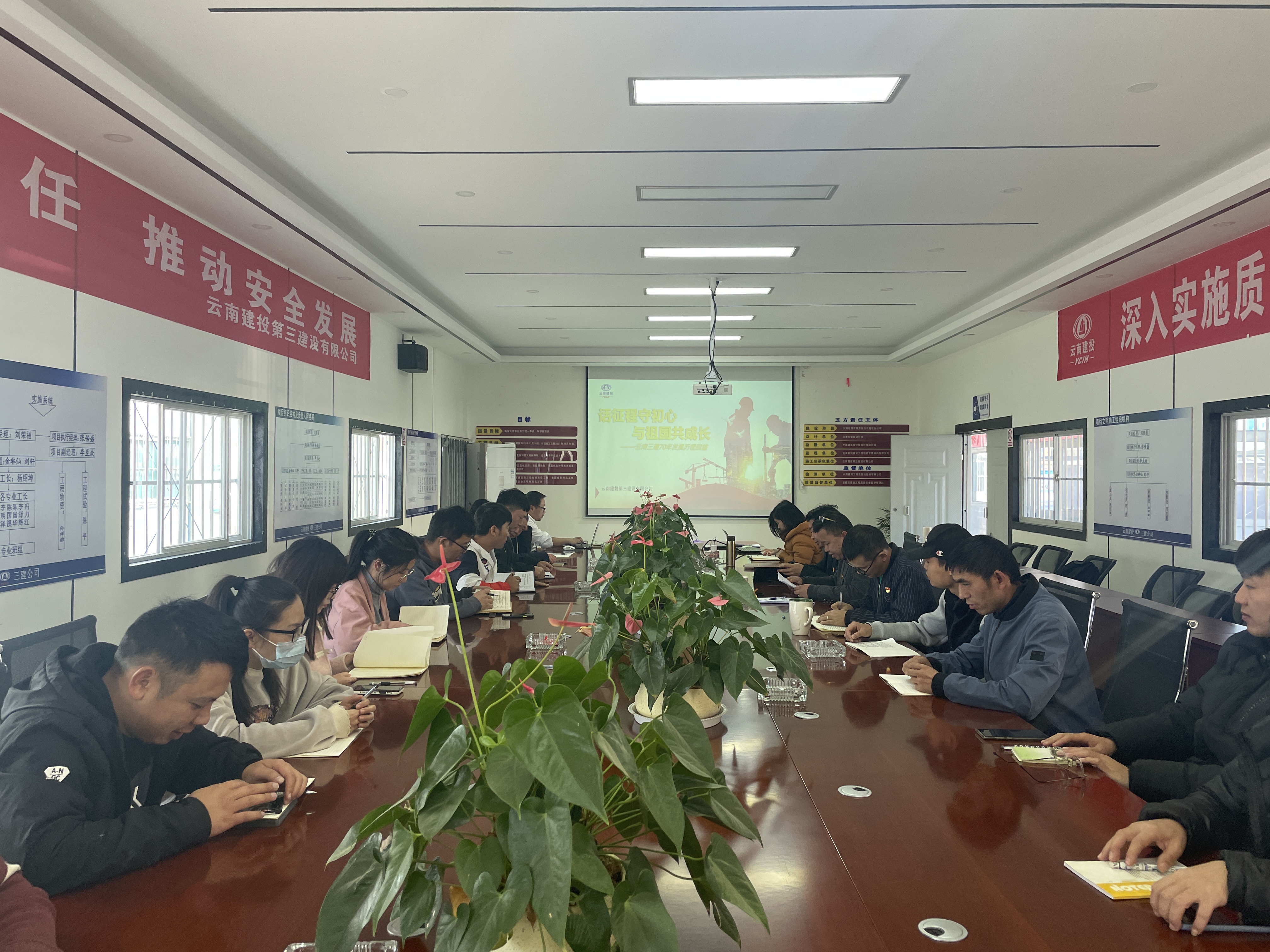 12月15日,第二項目經(jīng)理部以現(xiàn)場會議+直播課程的形式組織“云南三建70年發(fā)展歷程”的學習,共57人參與學習。