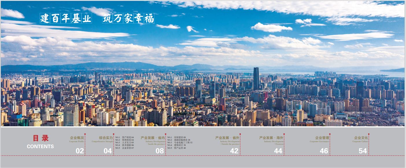 新版宣傳冊修訂以慶祝建司70周年為契機(jī),傳承和發(fā)揚(yáng)公司“團(tuán)結(jié)拼搏、開拓創(chuàng)新,精益求精、創(chuàng)造一流”的企業(yè)精神,用文字和圖片展示了公司取得的輝煌成就,版面設(shè)計突出重點、層次分明、嚴(yán)謹(jǐn)不失活潑,既展現(xiàn)了公司70年的厚重底蘊(yùn),又有現(xiàn)代化企業(yè)應(yīng)有的朝氣與活力,內(nèi)容主要包括“企業(yè)概況”“綜合實力”“產(chǎn)業(yè)發(fā)展”“企業(yè)管理”“企業(yè)文化”等,全面介紹了公司歷史的沿革和近幾年的發(fā)展情況,著重對公司房屋建筑、基礎(chǔ)設(shè)施建設(shè)、專業(yè)化施工工程、建筑設(shè)計、資產(chǎn)運(yùn)營“五大業(yè)務(wù)板塊”,資質(zhì)、技術(shù)、管理等“企業(yè)硬實力”和人才隊伍、文體活動、企業(yè)精神等“企業(yè)軟實力”進(jìn)行了全方位展現(xiàn)。