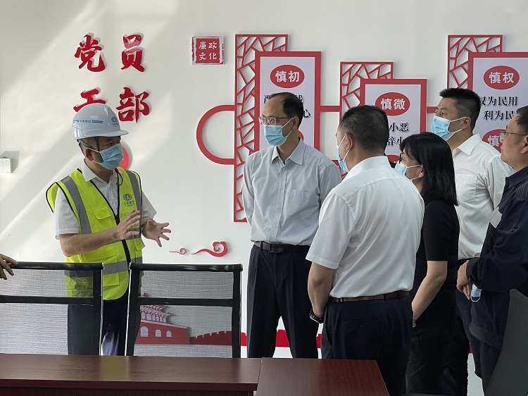 張忠東一行分別參觀了項目智慧工地指揮中心、黨建活動室、職工驛站,并到施工現(xiàn)場實地調(diào)研了項目建設(shè)情況。