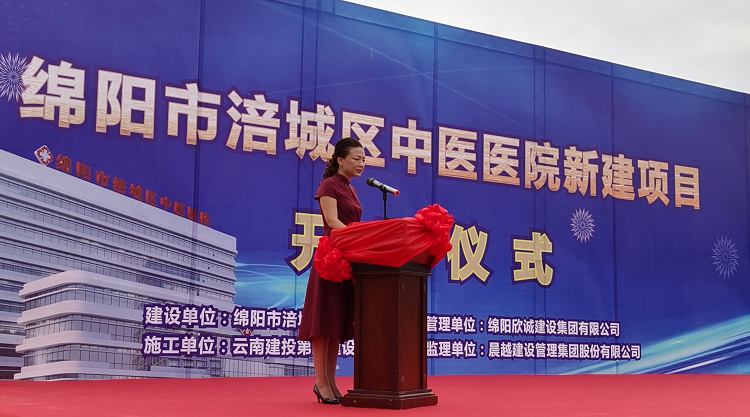 涪城區(qū)中醫(yī)醫(yī)院院長(zhǎng)姚順春介紹建設(shè)項(xiàng)目情況,并宣布開(kāi)工儀式正式開(kāi)始,綿陽(yáng)市涪城區(qū)人大常委會(huì)副主任李里為本次啟動(dòng)儀式致辭。