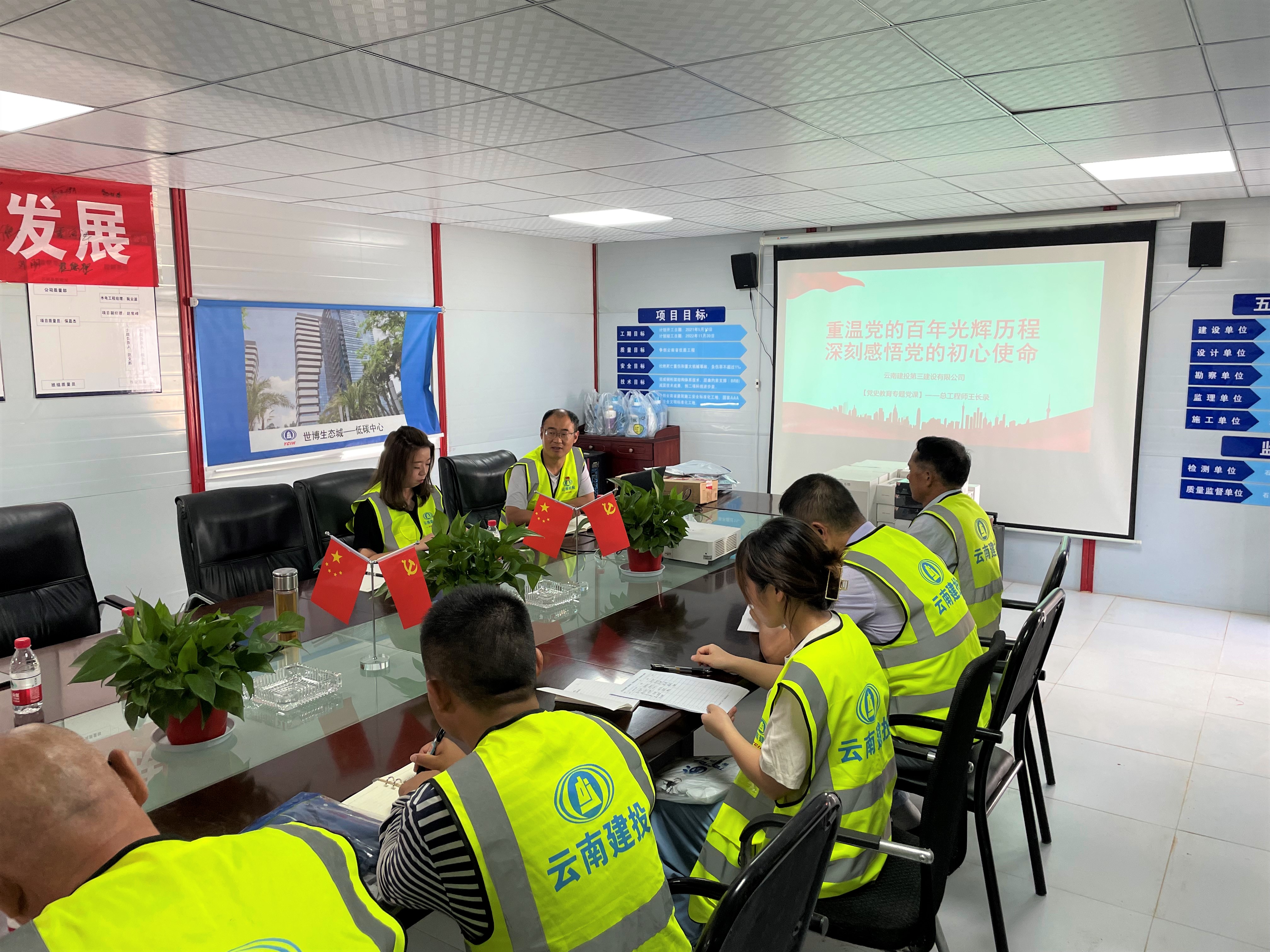 6月18日,公司黨委書(shū)記、董事長(zhǎng)吳勇攜黨委副書(shū)記、工會(huì)主席張欣一行到第一直管項(xiàng)目部云南昆明血液中心呈貢項(xiàng)目開(kāi)展黨史學(xué)習(xí)教育專題宣講,指導(dǎo)黨建工作。