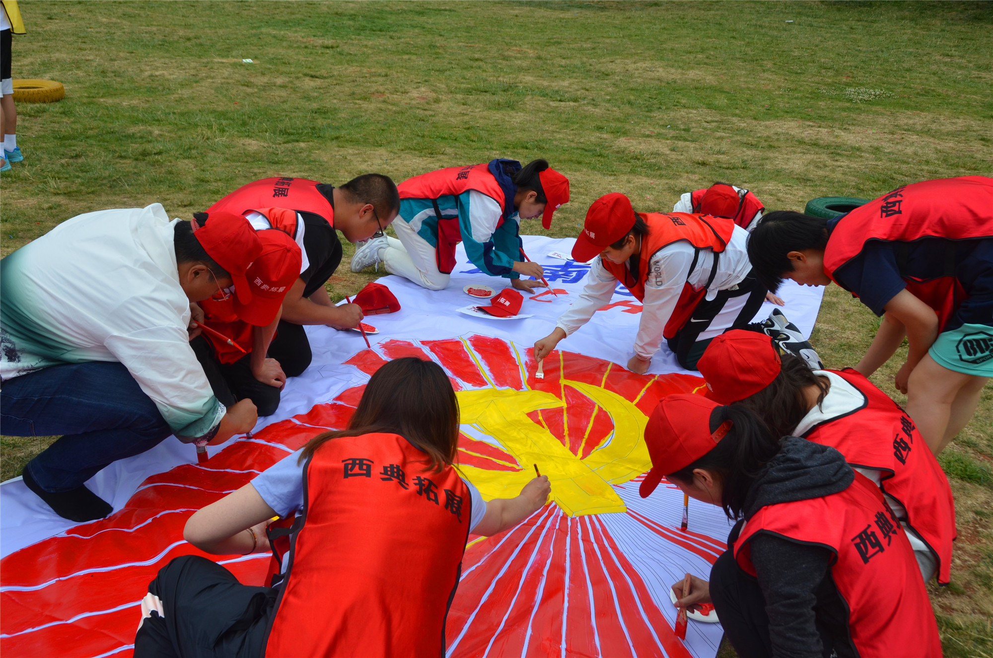活動最后,團員青年們手持畫筆與顏料,共同完成了慶祝建黨100周年為主題的的8米寬巨幅繪畫作品,大家相互配合、共同努力,畫下一筆筆鮮紅的色彩,向建黨百年送上真摯的祝福。