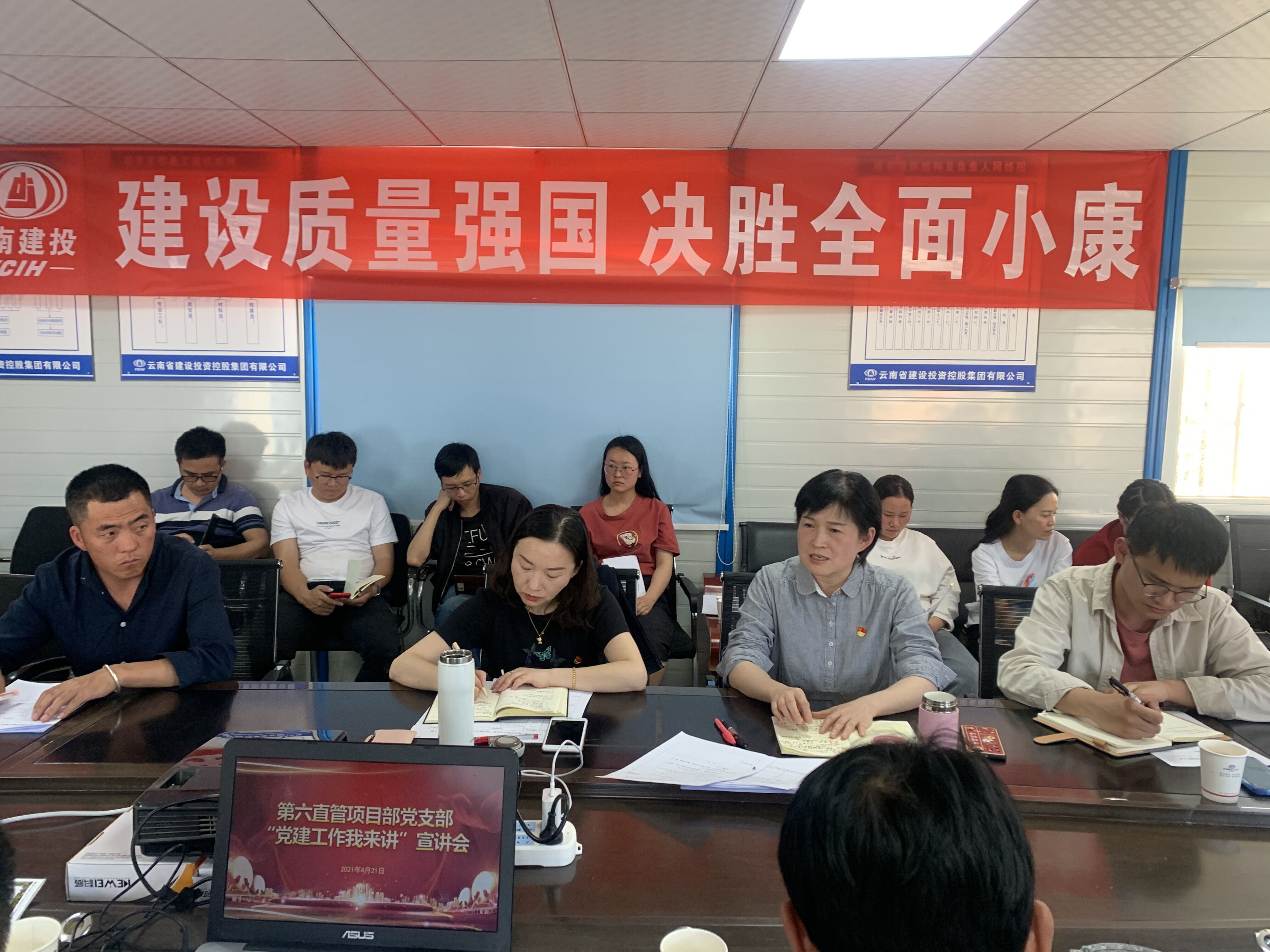 4月21日,第六直管項(xiàng)目部在易門麥子田項(xiàng)目開展“黨建工作我來講”宣講活動,公司黨委副書記、工會主席張欣率隊(duì)參加。