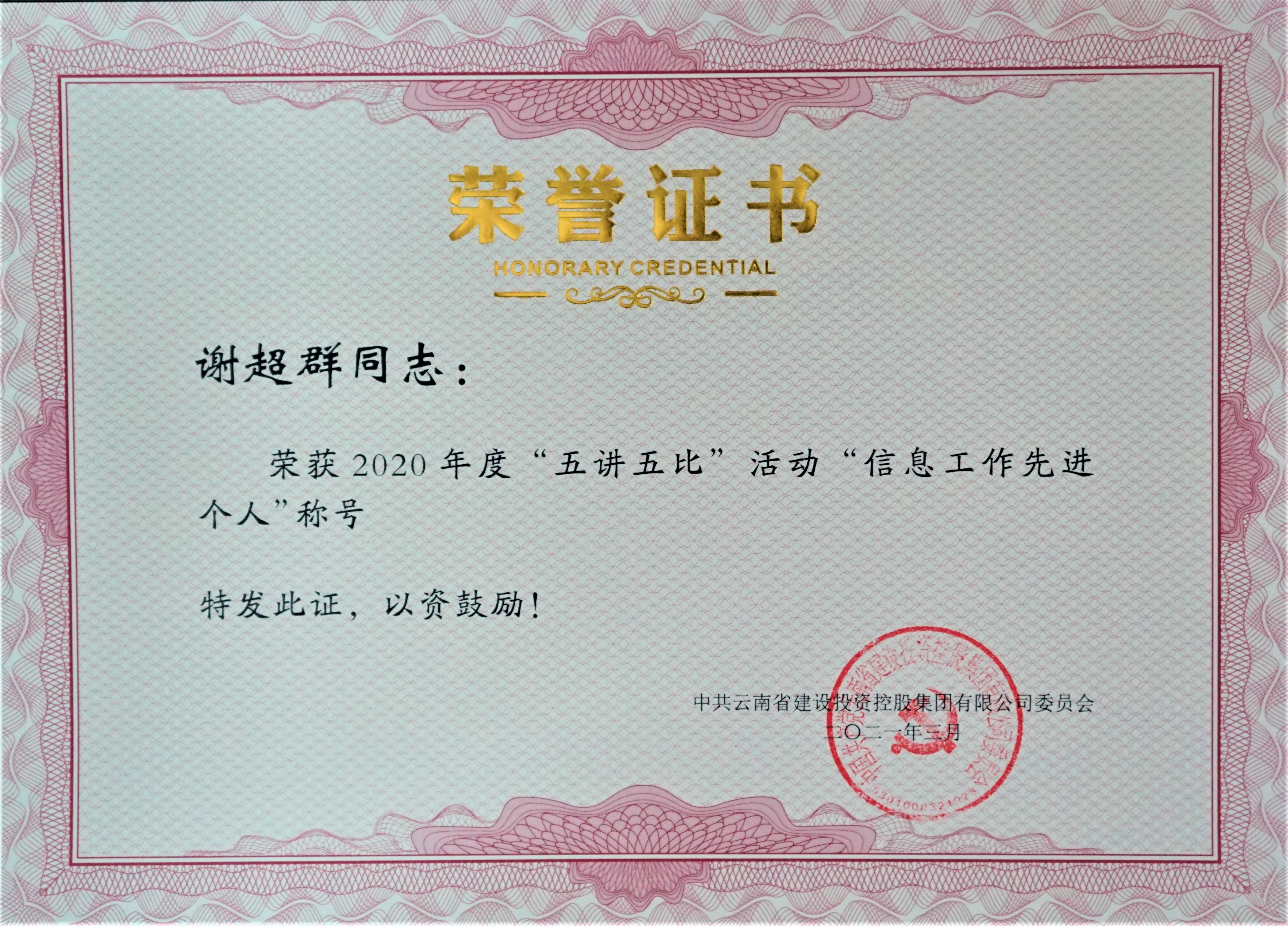 其中,公司榮獲“信息工作先進(jìn)集體”稱號(hào);金沙江白鶴灘水電站巧家縣移民房屋與市政工程總承包(EPC)項(xiàng)目、昆明醫(yī)科大學(xué)第一附屬醫(yī)院5號(hào)樓建設(shè)項(xiàng)目榮獲“最佳示范項(xiàng)目”稱號(hào);公司法律事務(wù)部經(jīng)理王娟榮獲“法務(wù)工作先進(jìn)個(gè)人”;黨委工作部業(yè)務(wù)主管謝超群榮獲“信息工作先進(jìn)個(gè)人”。
