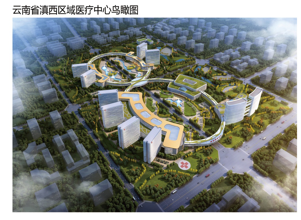 云南省滇西區(qū)域醫(yī)療中心以“立足大理,服務(wù)滇西,輻射川藏毗鄰地區(qū),面向南亞東南亞”為定位,將建設(shè)一個(gè)高端、智慧的最美區(qū)域醫(yī)療中心。項(xiàng)目位于大理市鳳儀鎮(zhèn)北部,用地北至關(guān)賓路,西至白塔河,南至大麗高速連接線,東至覽川路延長(zhǎng)線,距大理古城18公里,距蒼山12公里,距洱海5公里,區(qū)位優(yōu)勢(shì)明顯,拓展空間大。規(guī)劃用地1072畝,擬建設(shè)5000床的醫(yī)療中心,涵蓋腫瘤、心血管、兒童、婦產(chǎn)、骨科和急救、醫(yī)技、檢驗(yàn)檢測(cè)等??漆t(yī)療機(jī)構(gòu),總建筑面積87萬平方米,估算總投資71.03億元。項(xiàng)目建設(shè)工期為2020至2025年,根據(jù)土地現(xiàn)狀分期推進(jìn)實(shí)施,先行啟動(dòng)心血管、骨科2個(gè)??漆t(yī)院及急救、醫(yī)技、檢驗(yàn)檢測(cè)3個(gè)共享中心建設(shè),再啟動(dòng)實(shí)施腫瘤、兒童、婦產(chǎn)3個(gè)??漆t(yī)院。一期項(xiàng)目總建筑面積34萬平方米,概算投資28.64億元,中標(biāo)價(jià)為17.6億元,工期為600天。