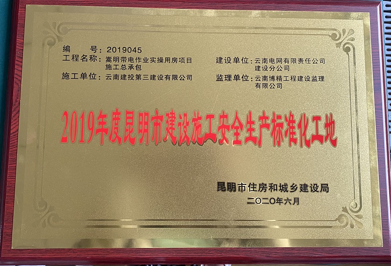 近日,由第四直管項目部承建的嵩明帶電作業(yè)實操用房項目施工總承包工程,被昆明市住房和城鄉(xiāng)建設(shè)局評為“2019年度昆明市建設(shè)施工安全生產(chǎn)標(biāo)準(zhǔn)化工地”。