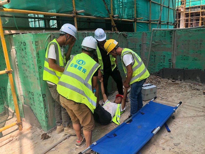 消防事故演練模擬中,現(xiàn)場管理人員對火勢情況進行通報,項目部立即啟動消防安全應(yīng)急預(yù)案,通訊、搶險、保衛(wèi)疏導(dǎo)、急救、事故調(diào)查五個應(yīng)急小組立即行動,引導(dǎo)事故現(xiàn)場人員立即撤離,并用消防器材撲滅火災(zāi)。高處墜落演練中,項目部負責(zé)人介紹了高處墜落案例,模擬當(dāng)高處墜落事件發(fā)生后對傷員的處置救護、現(xiàn)場的管理及后續(xù)處理等工作。