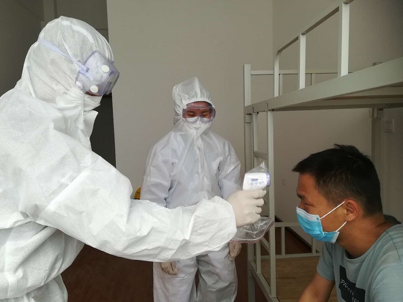 “報告總指揮,施工人員周某體溫測量為37.8℃,現已將他轉至隔離室……”