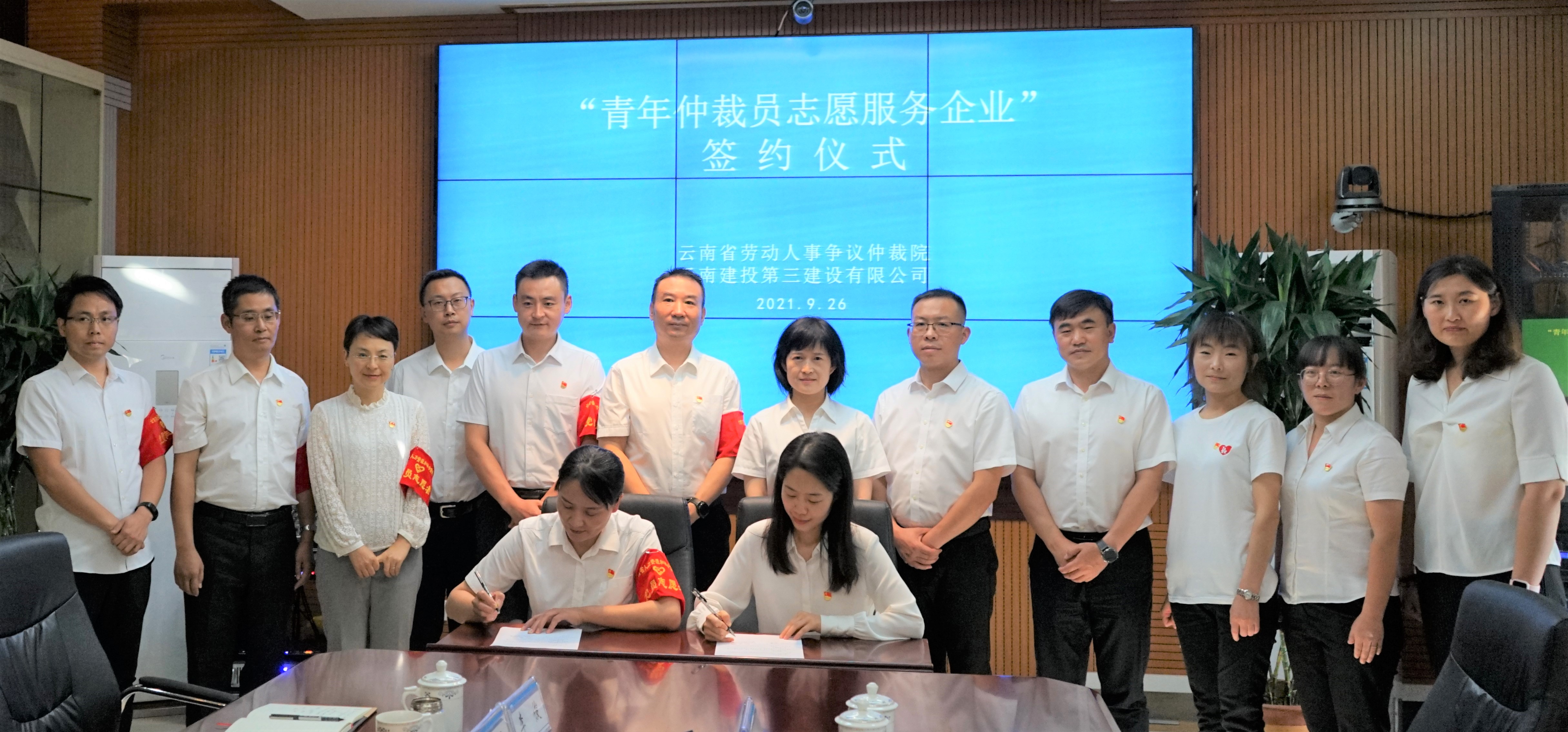 活動最后,雙方代表簽訂了《青年仲裁員志愿者聯(lián)系企業(yè)服務(wù)協(xié)議書》并合影留念。